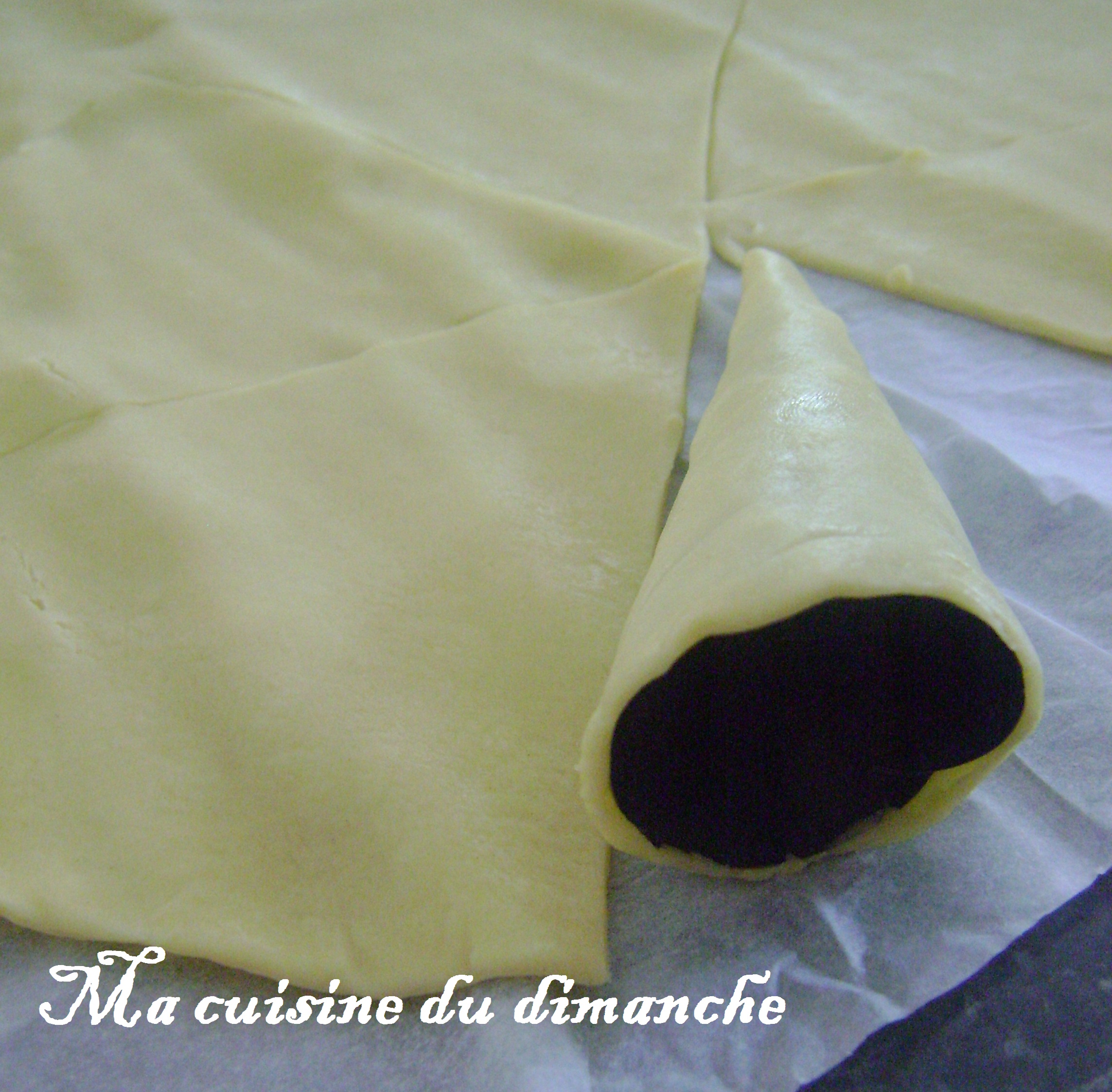 - Beurrer chaque cône à l’aide d’un pinceau et enrouler ensuite la pâte autour. Souder la pâte en appuyant légèrement avec le doigt.