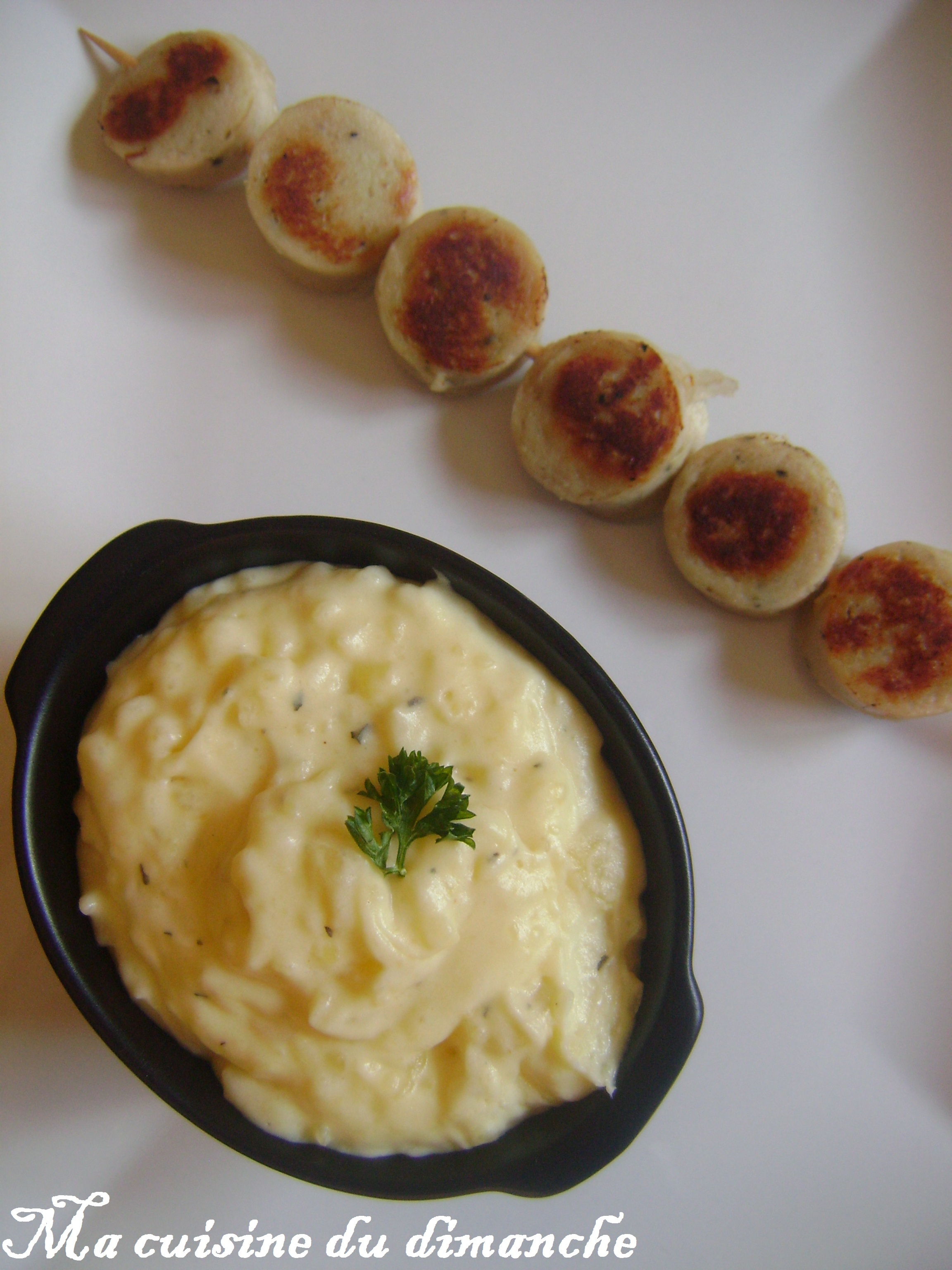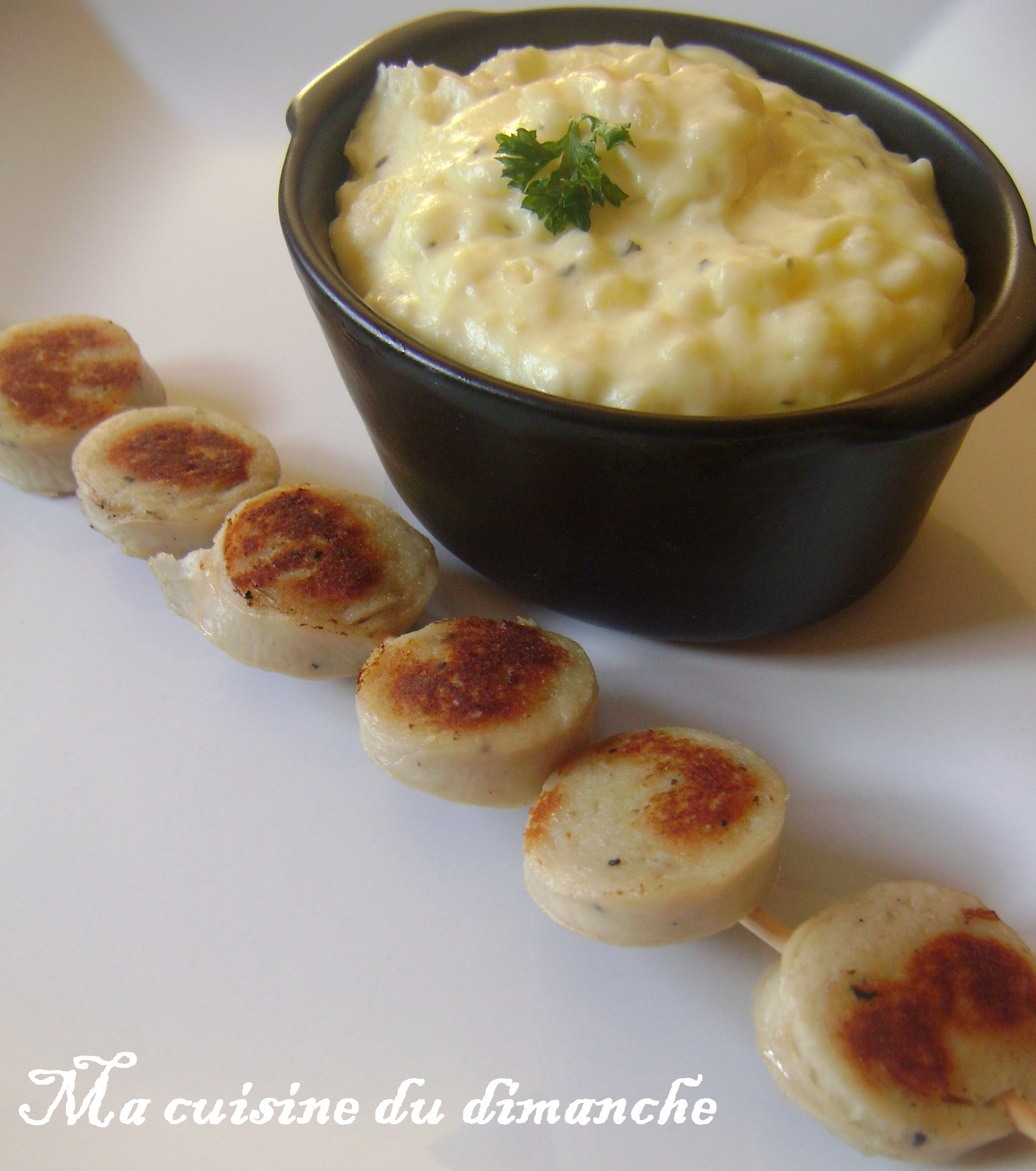 Une réflexion sur “Ecrasé de pommes de terre au citron & brochette de boudin blanc à la truffe”