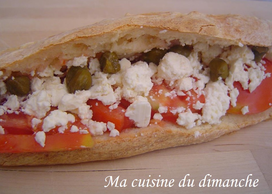 - Laisser refroidir les baguettes sur une grille avant de déguster. Ici, j’ai garni les baguettes de tomates, féta et câpres.