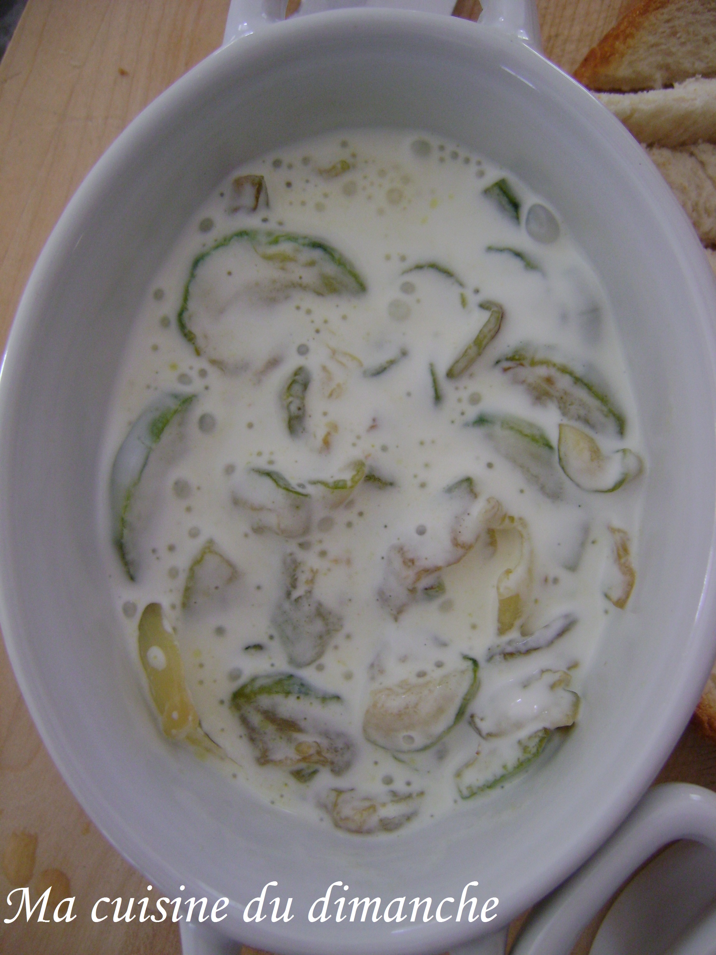 - Verser la crème liquide sur les courgettes et casser l’œuf dessus délicatement.