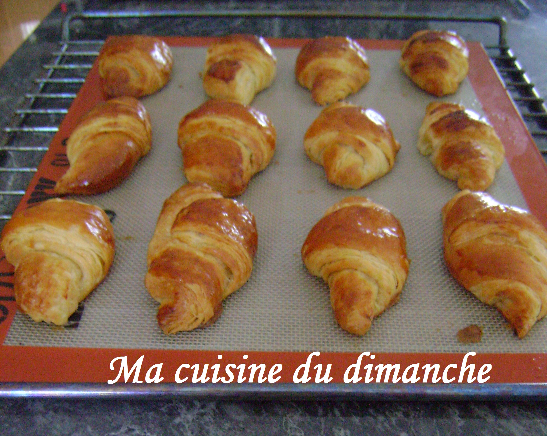 L’idéal pour les savourer tout chauds au p’tit matin, c’est de les laisser pousser toute la nuit sur une plaque au réfrigérateur. Il vous suffit de les sortir 1h (ou 2) avant votre lever pour qu’ils poussent encore à température ambiante (alors on est d’accord que comme c’est dimanche, vous vous levez, vous sortez les croissants et hop vous retournez vous coucher car aujourd’hui c’est grasse mat’ ! 😉 ). Je vous déconseille fortement de les faire la veille, ils perdraient tout leur croustillant et deviendraient mous (comme ceux de la boulangerie d’ailleurs !).