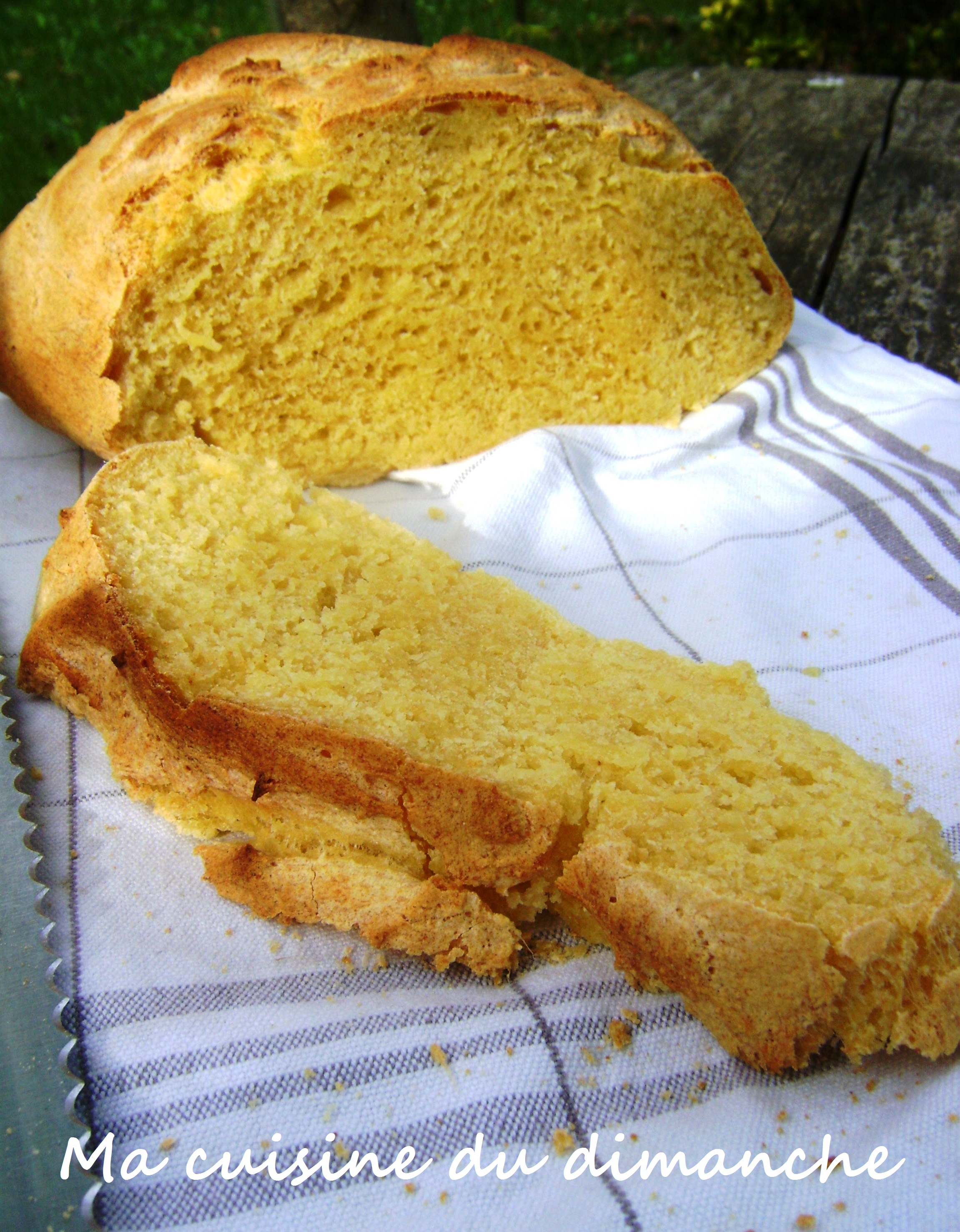 Ce pain n’est pas entièrement réalisé avec de la farine de maïs, il en contient seulement 40%. Il ne faut pas confondre « farine de maïs » et « fécule de maïs » ! La différence entre la farine et la fécule est liée à la composition du produit. La farine de maïs a une consistance proche de la semoule, un grain un peu épais, elle est faite à partir de la mouture de la totalité de la graine (amidon + germe + enveloppe du grain) alors que la fécule de maïs ne contient que de l’amidon, ce qui donne une poudre plus fine constituant un excellent liant pour les sauces (on pourrait citer par exemple la fameuse fécule de la marque « Maïzena »)