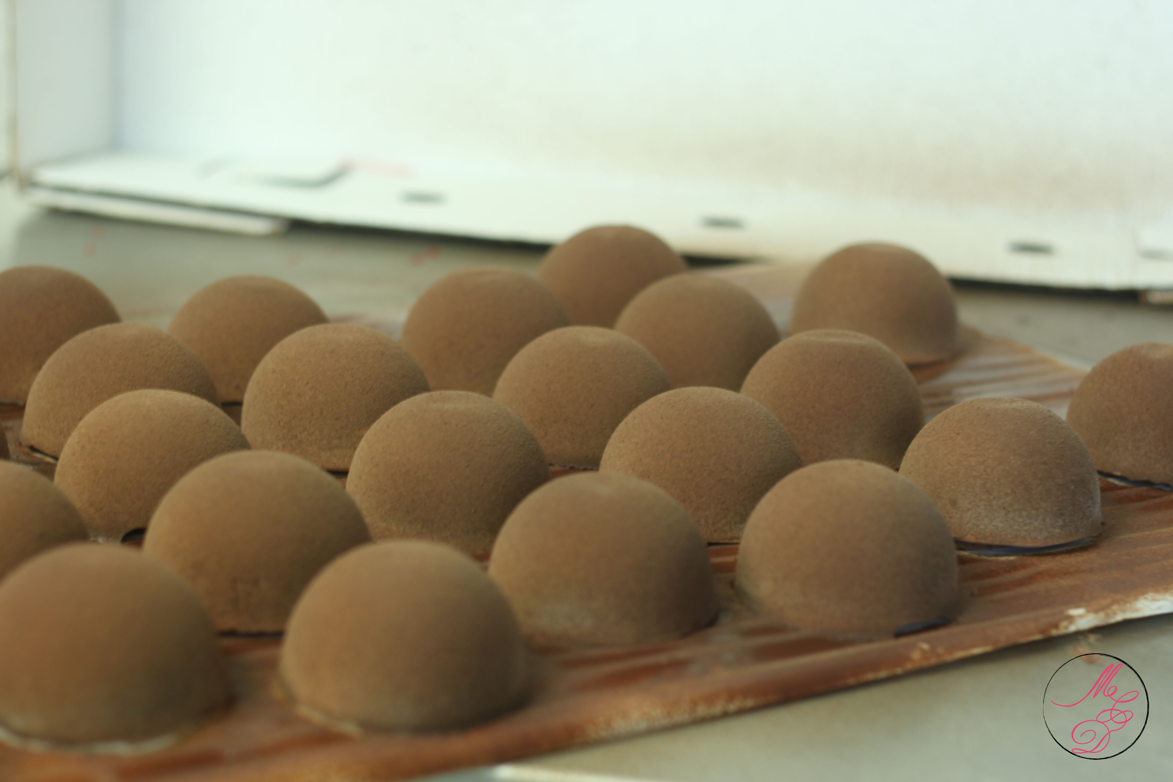 Pour avoir de belles coques brillantes, il faut bien respecter les étapes du tempérage*. Pour le chocolat que j’ai utilisé (qui est un chocolat de couverture), la marque Barry préconisait de suivre la courbe de tempérage suivante : 45-50°, 27-28°, 30-31° (explications plus bas). C’est généralement ce qui est préconisé pour une ‘couverture marron’ (chocolat noir) . La courbe de tempérage est différente selon la nature de la couverture (Ivoire/Marron/ lactée).