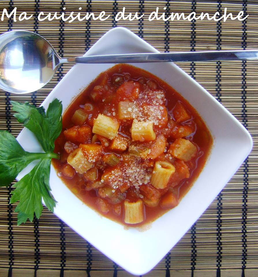 Il existe plusieurs versions de Minestrone, chaque région d’Italie a ses propres ingrédients privilégiés et chaque famille le fait un peu à sa façon. La version que je vous présente est celle que j’affectionne le plus, à base de céleri, carottes, navets, oignons, pommes de terre, tomates et pâtes. Il est également possible d’ajouter du lard et autres morceaux de viande si vous le souhaitez. A vous de l’adapter à vos goûts et traditions culinaires 🙂