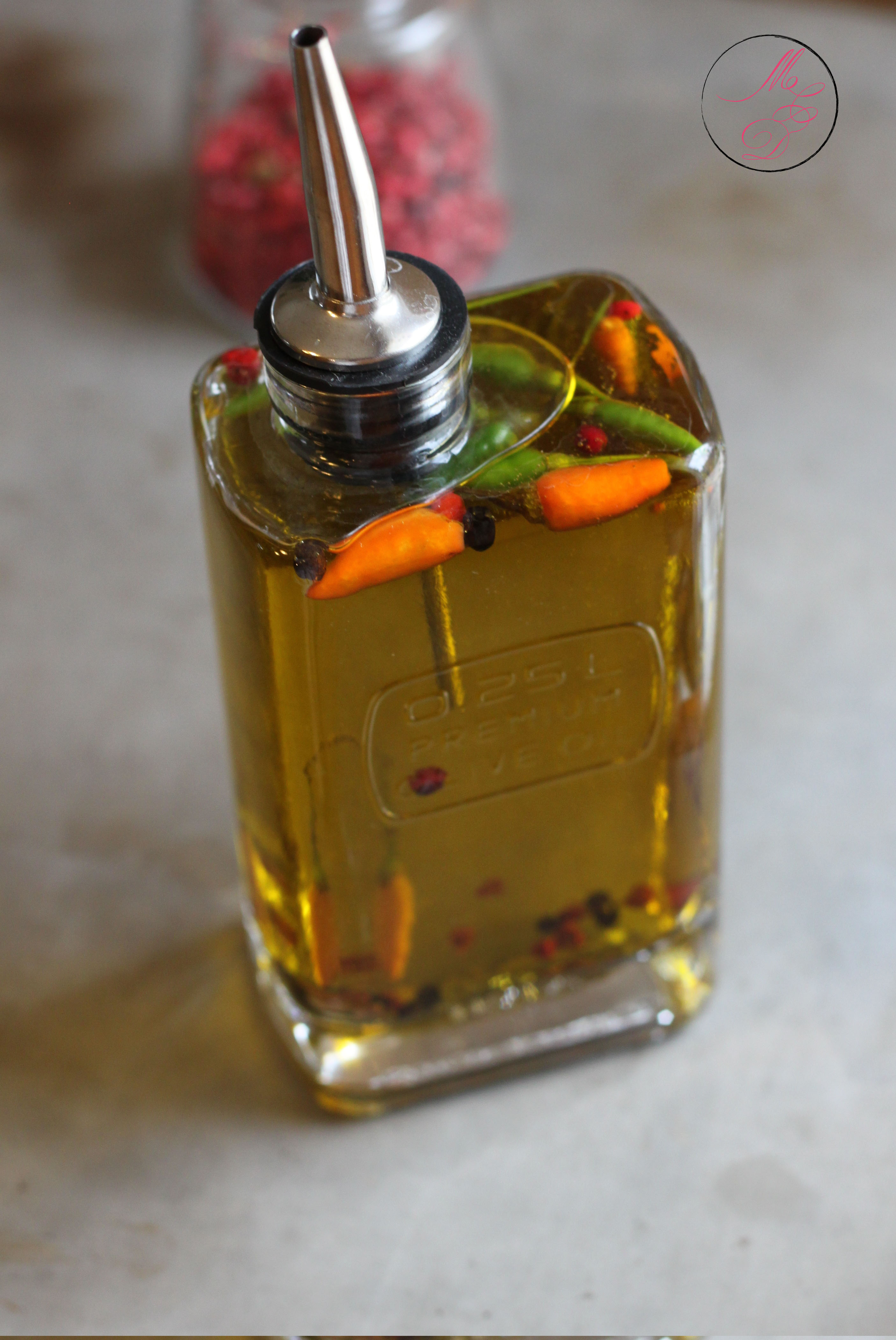 Si j’aime les plats goûteux, j’aime aussi de temps en temps quand ils sont bien relevés et piquants. Ces jours-là quand l’envie me prend, j’ai juste besoin de sortir l’huile piquante du placard. Ultra pratique puisqu’elle se garde très bien dans le temps, on l’a toujours à portée de main sans avoir à courir après des piments le jour où on veut pimenter un peu notre vie  repas 😉