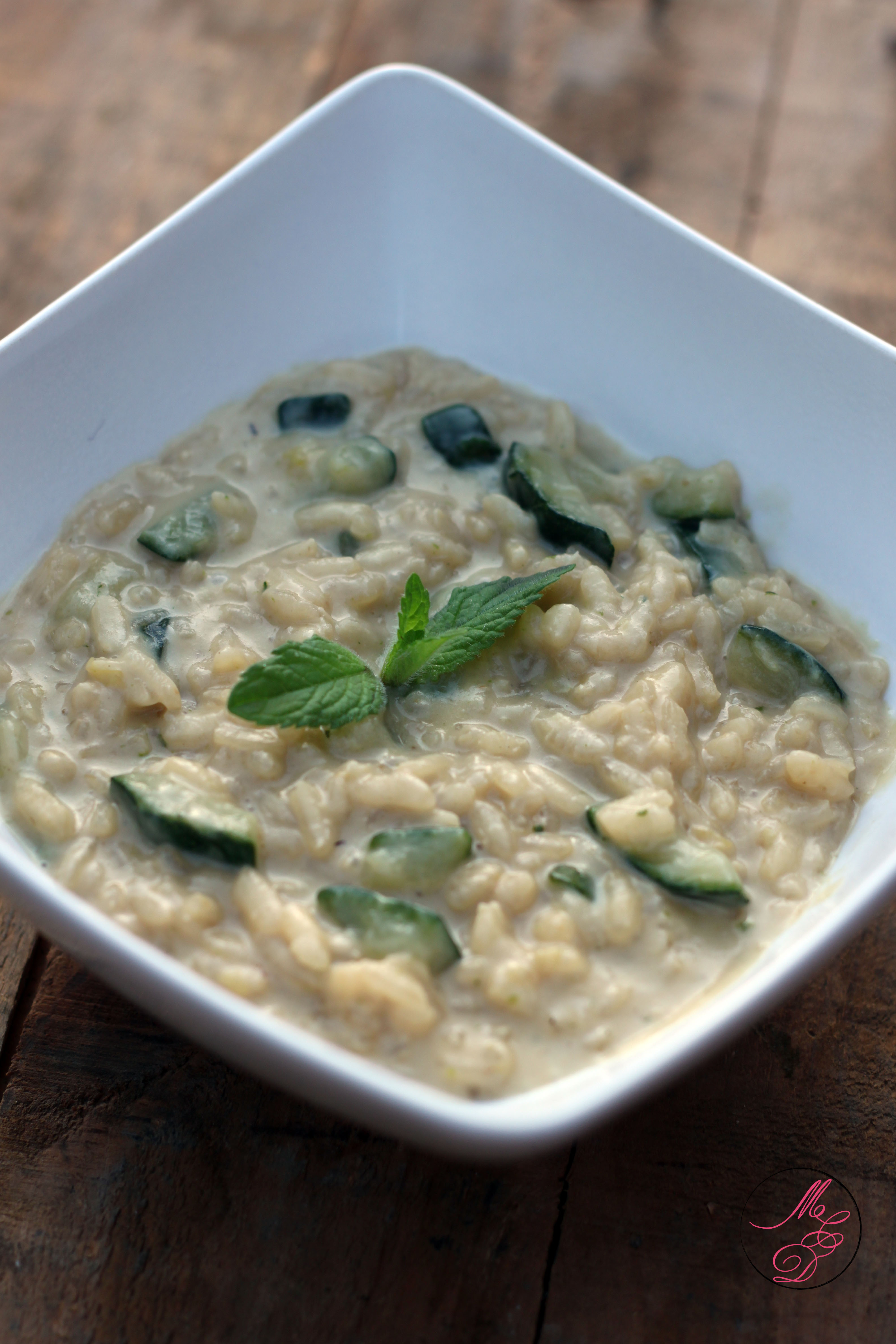 - Quand le risotto est cuit, ajouter la crème et le fromage râpé. Vérifier l’assaisonnement (sel, poivre et vous pouvez éventuellement ajouter une pincée de cumin, ça se marie très bien avec la courgette).