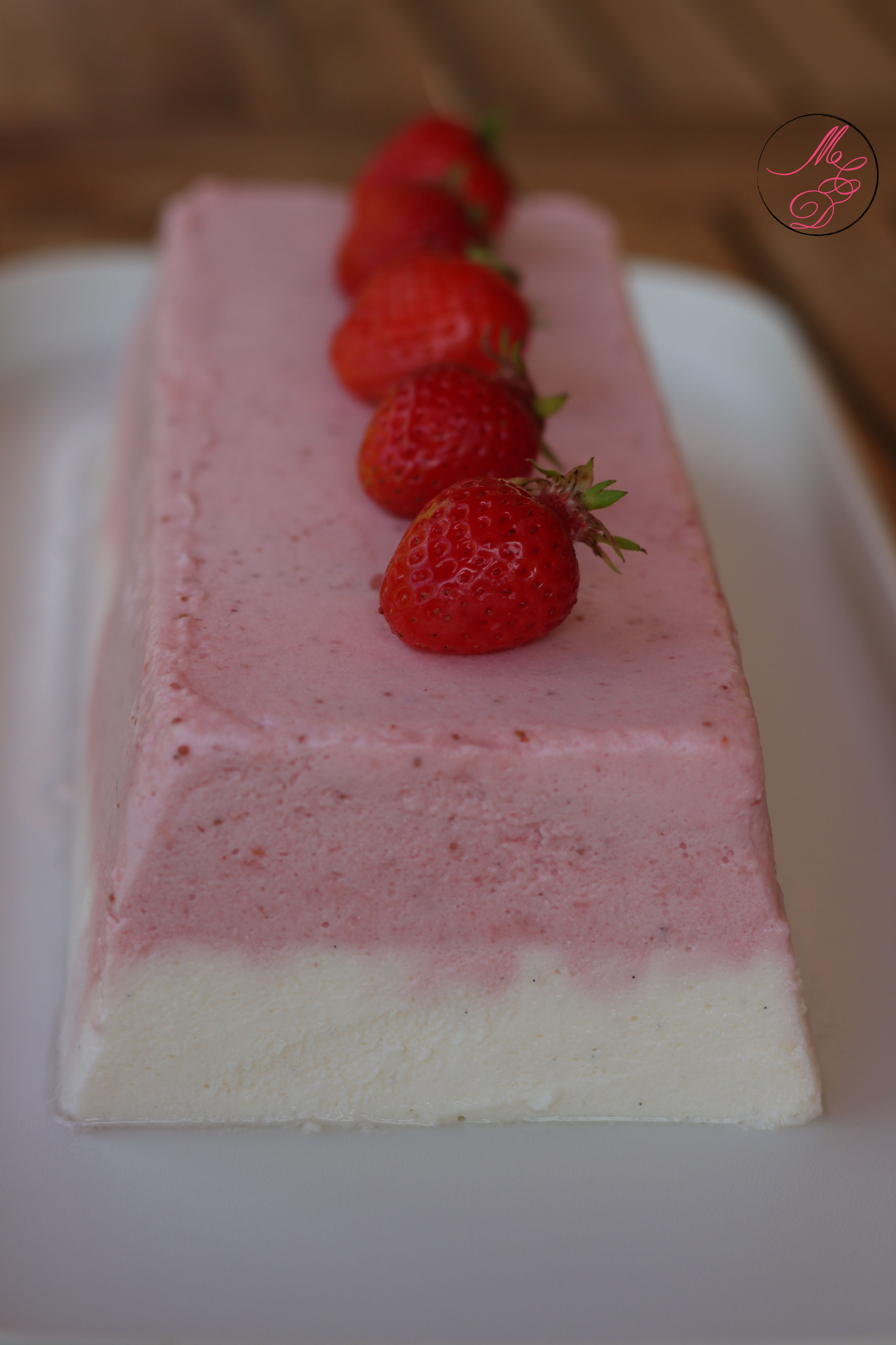 - Sortir le moule qui contient la mousse à la fraise (qui doit avoir commencé à bien prendre) et verser par dessus la mousse à la vanille.