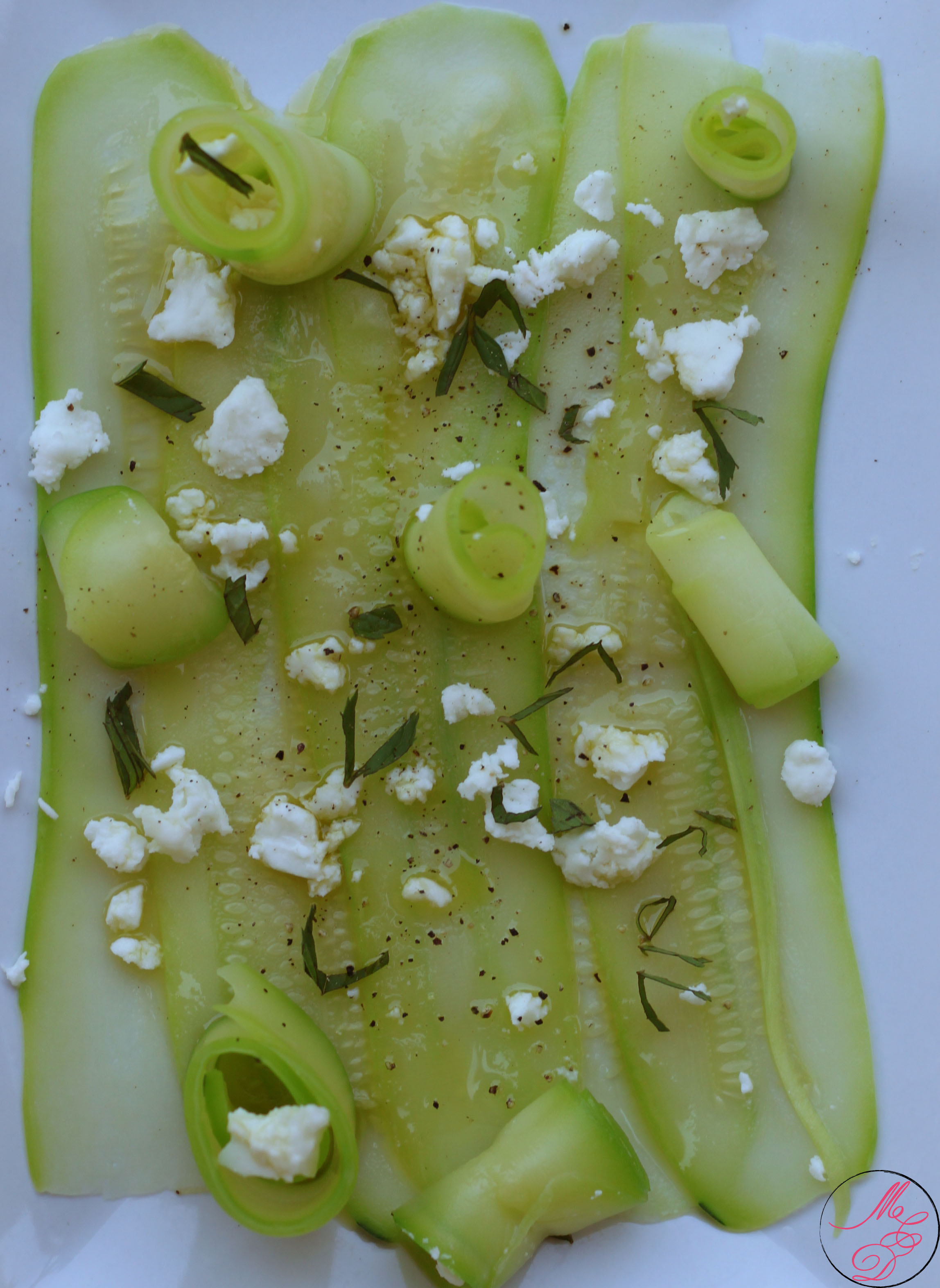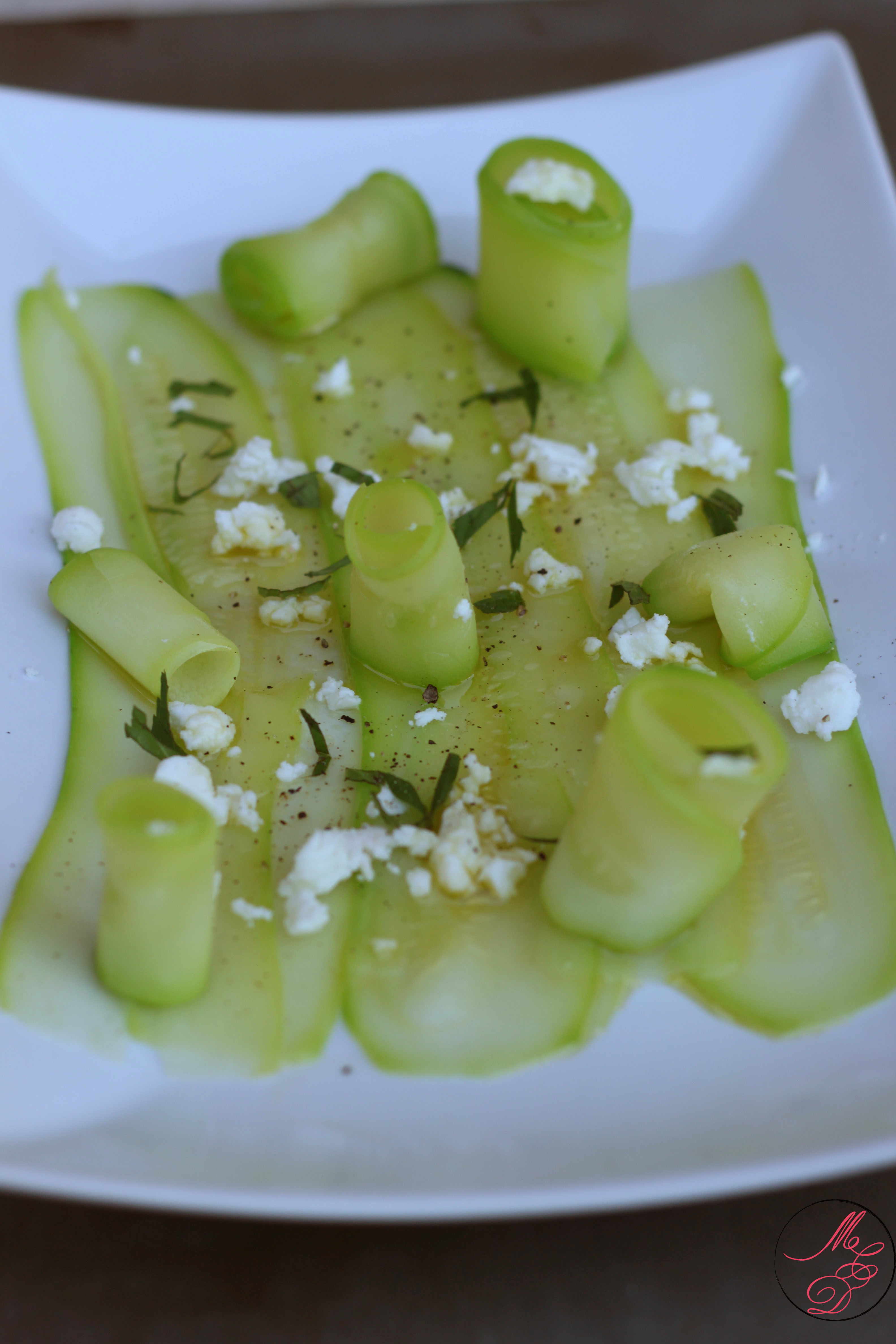 Dans cette recette, j’ai blanchi les lamelles de courgettes pendant 2 minutes dans une eau bouillante et salée. Cela permet de conserver le côté croquant de la courgette tout en préservant sa saveur, couleur et texture. Pour apporter encore plus de fraîcheur, rien ne vaut une petite touche de menthe qui s’harmonise parfaitement avec la courgette et la feta.