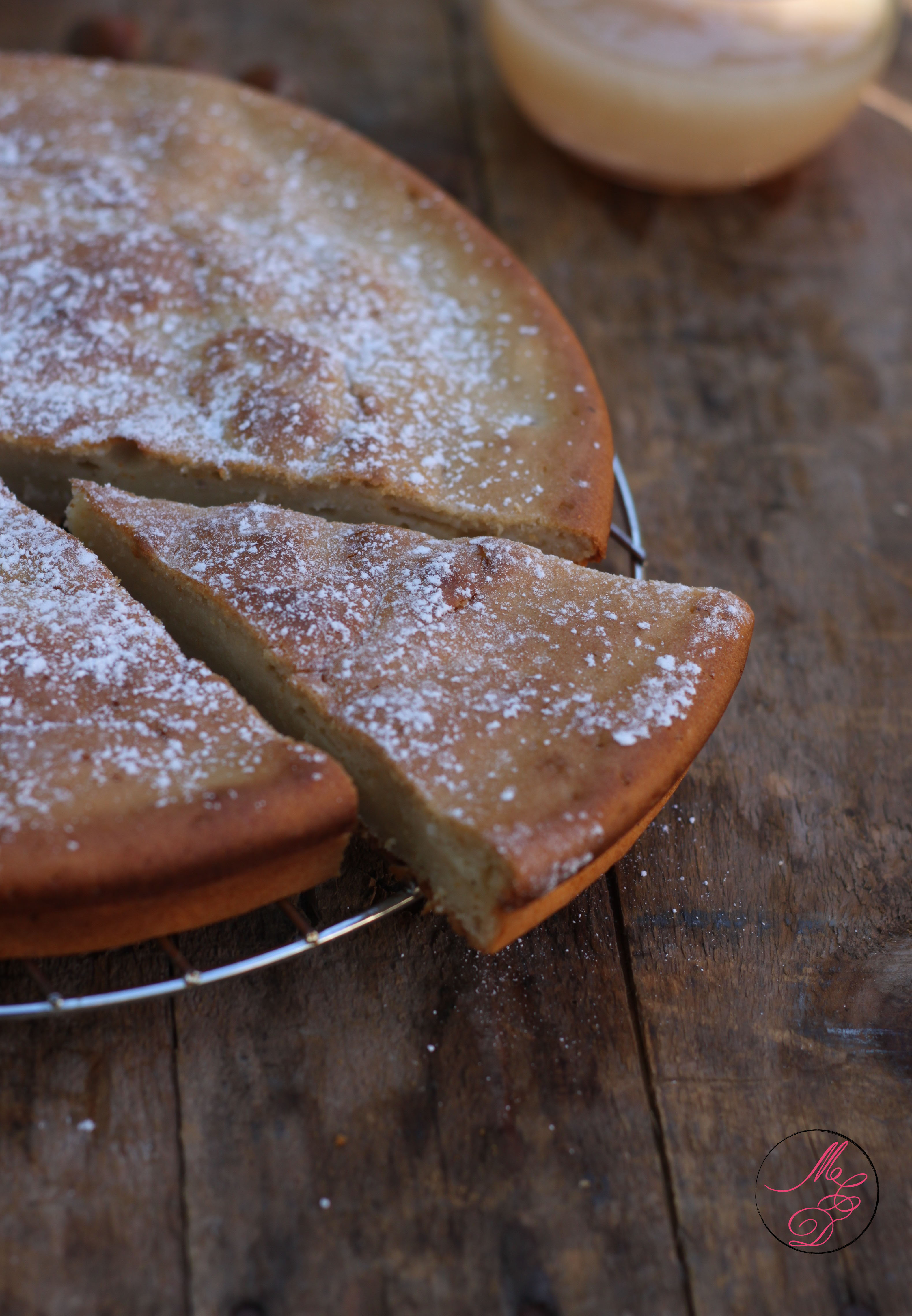 Ce gâteau est réalisé en partie avec de la compote de pomme, ce qui va apporter de l’humidité à la pâte et le gâteau restera ainsi parfaitement moelleux. Pour lui donner une touche encore plus gourmande, j’ai utilisé de l’huile de noisette à la place du beurre. La saveur de la noisette se marie à merveille avec l’acidité de la pomme, ici on a tous adoré !