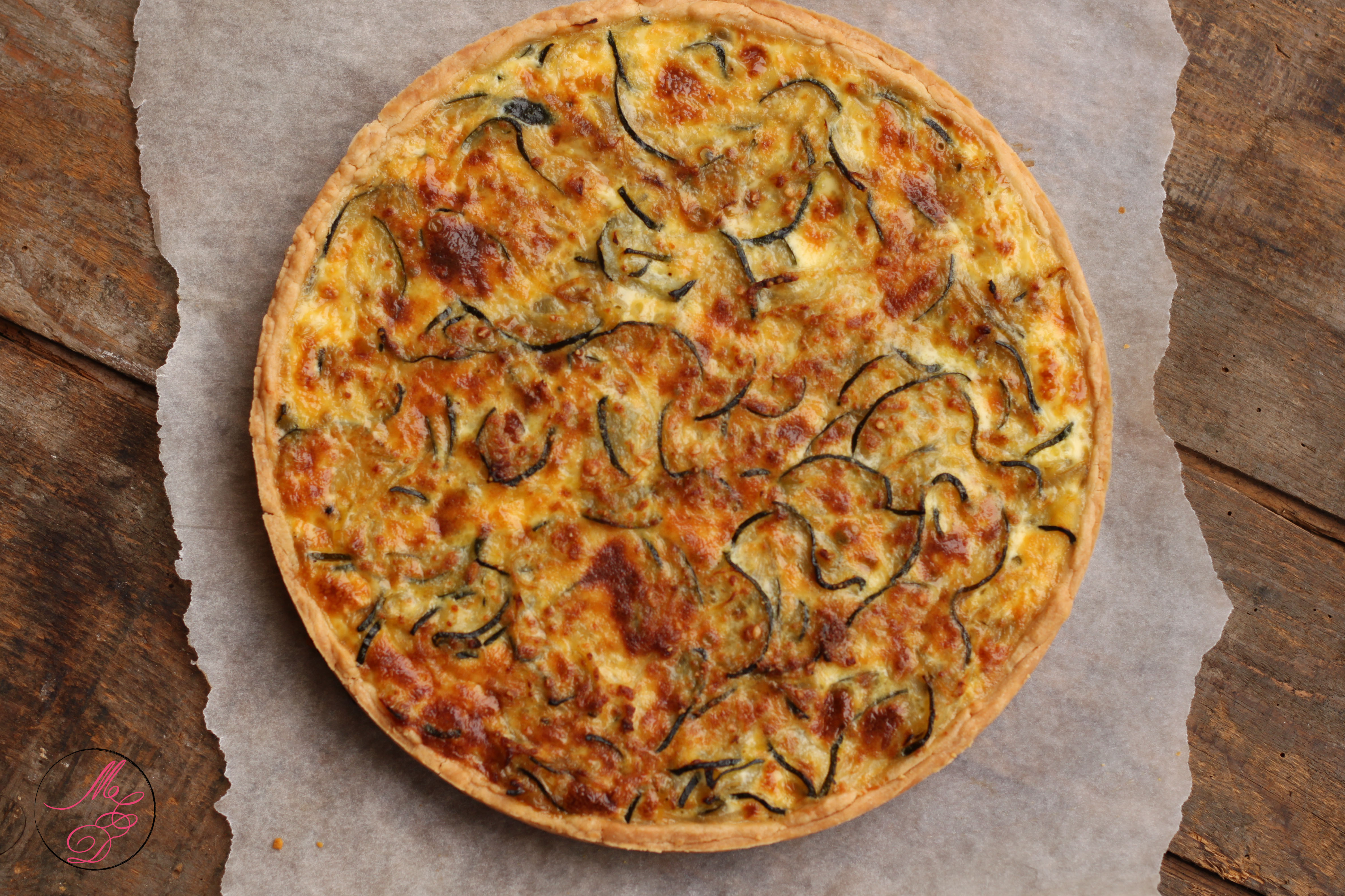 - Répartir le mélange courgettes/oignons sur toute la surface de la pâte et verser l’appareil par-dessus.