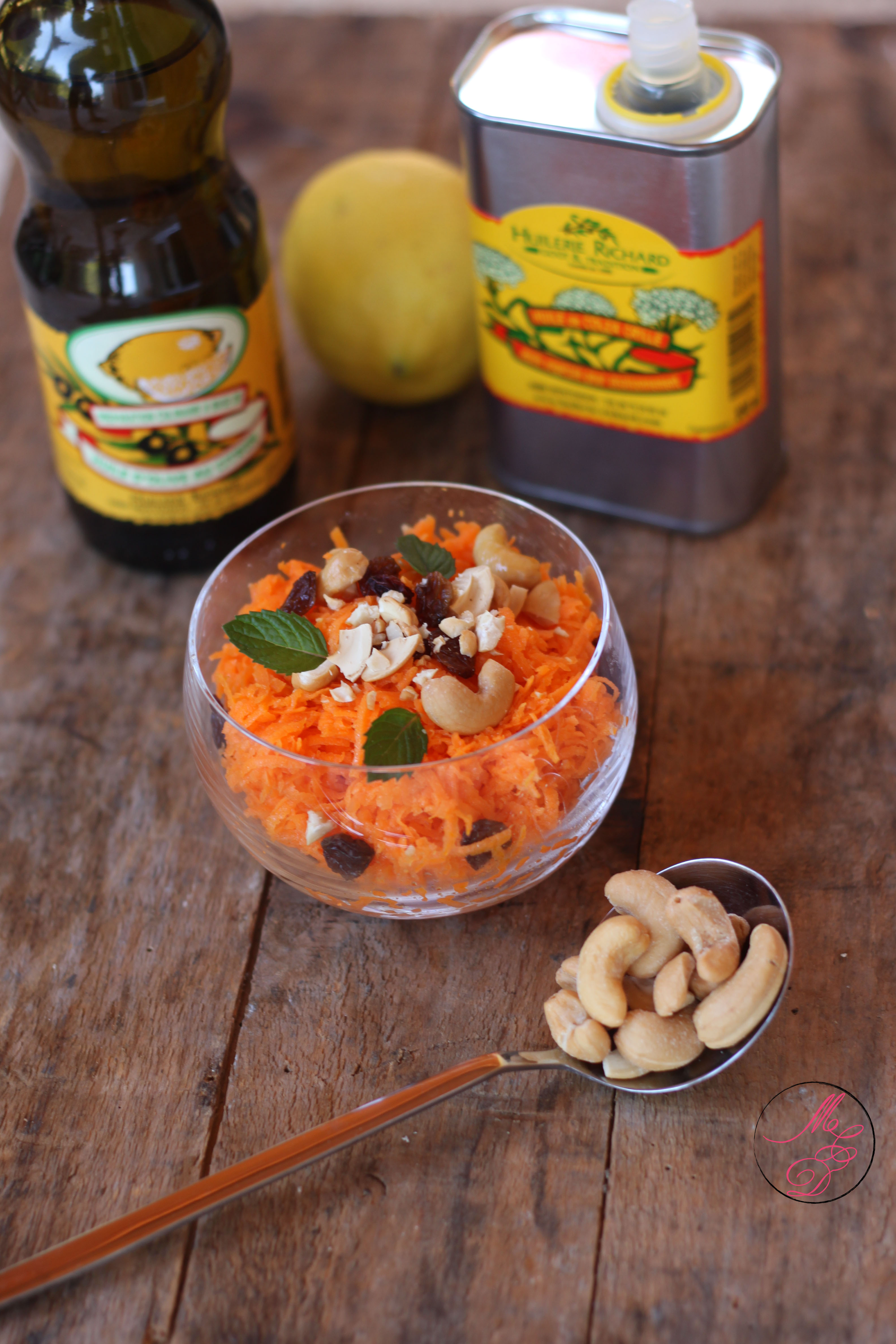 Il y a quelques temps, je vous avais parlé de l’Huilerie Richard (souvenez-vous c’était dans cet article). Aujourd’hui, j’ai découvert deux nouvelles huiles de cette marque que j’ai décidé d’utiliser pour assaisonner une salade de carottes. D’ordinaire, j’ajoute toujours le jus d’un citron dans mes salades de carottes, c’est pourquoi quand j’ai découvert qu’il existait une huile d’olive aromatisée au citron, cela m’est apparu comme une évidence : elle ne pouvait que bien se marier avec les carottes ! J’ai été agréablement surprise par la puissance des arômes du citron, je n’imaginais pas qu’on le sentirait autant ! Il apporte vraiment beaucoup de fraîcheur à cette huile.