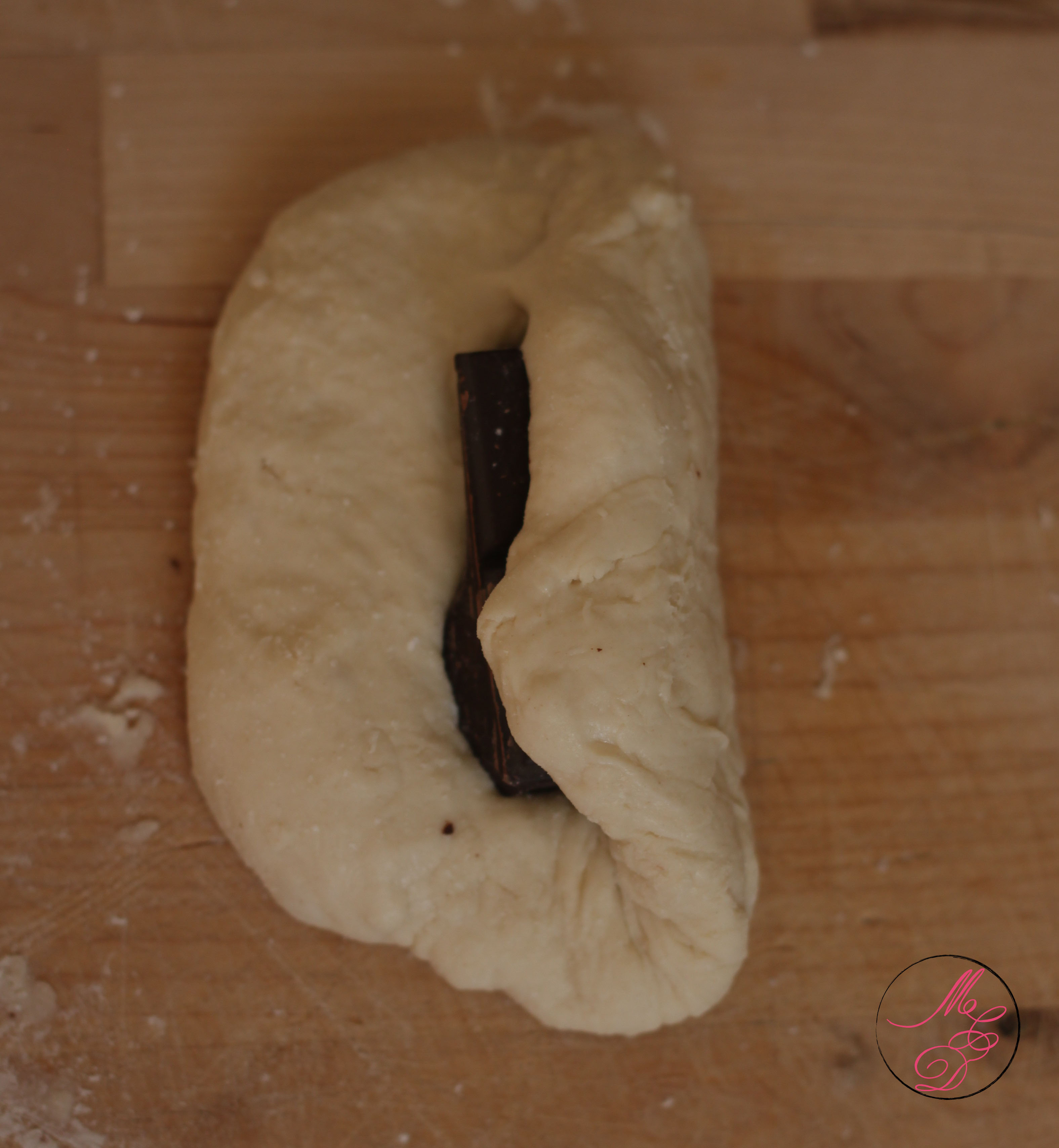 - Refermer la pâte par-dessus le chocolat et façonner des petits pains de forme ovale.