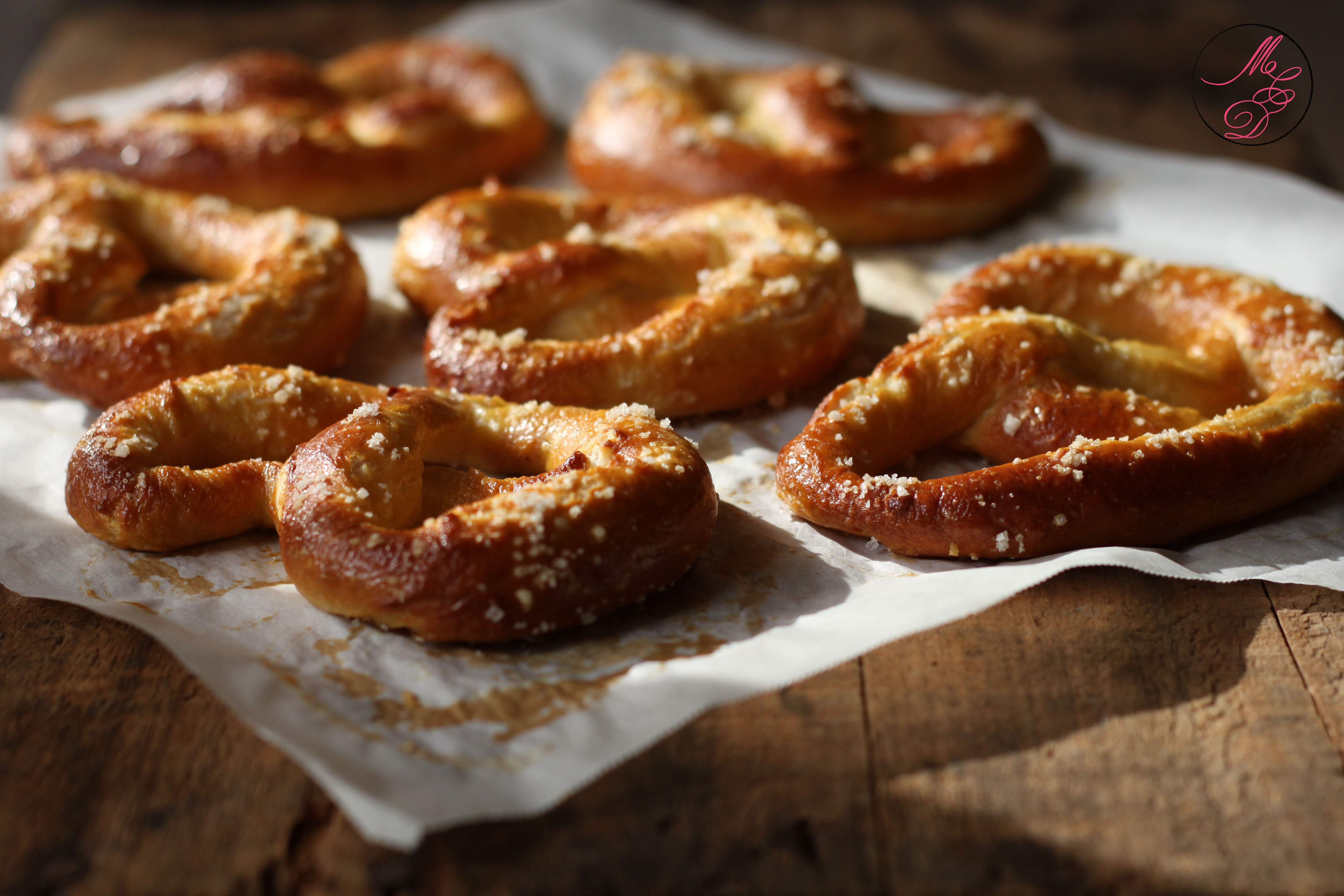 - Battre un œuf dans un petit bol, puis à l’aide d’un pinceau badigeonner les bretzels avec l’œuf. Saupoudrer un peu de fleur de sel sur les Bretzels (vous pouvez aussi mettre des graines de pavot ou de sésame)