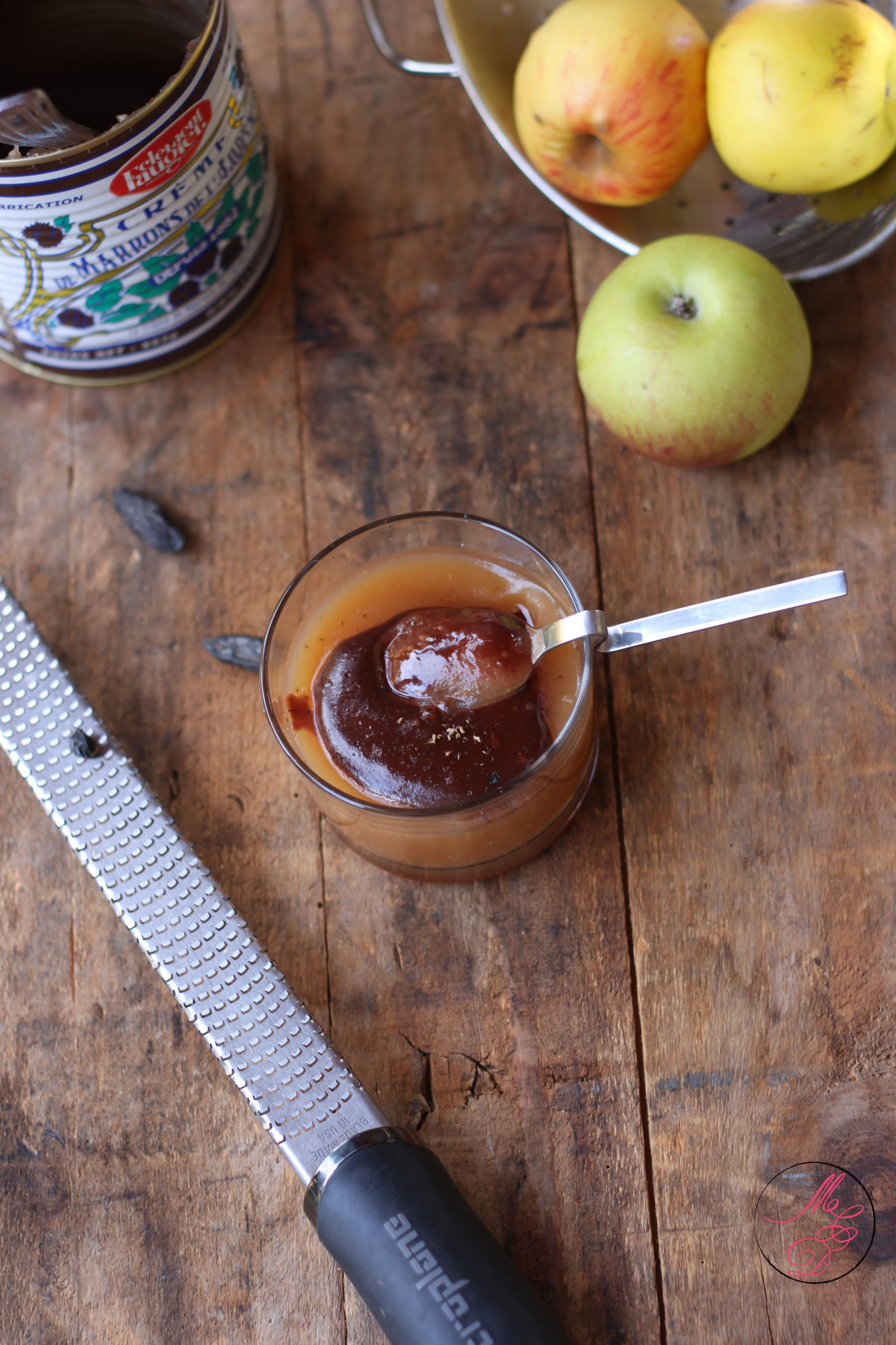 Une délicieuse compote de pommes « maison », un reste de crème de marrons et un brin de gourmandise, voilà comment est né ce dessert improvisé.