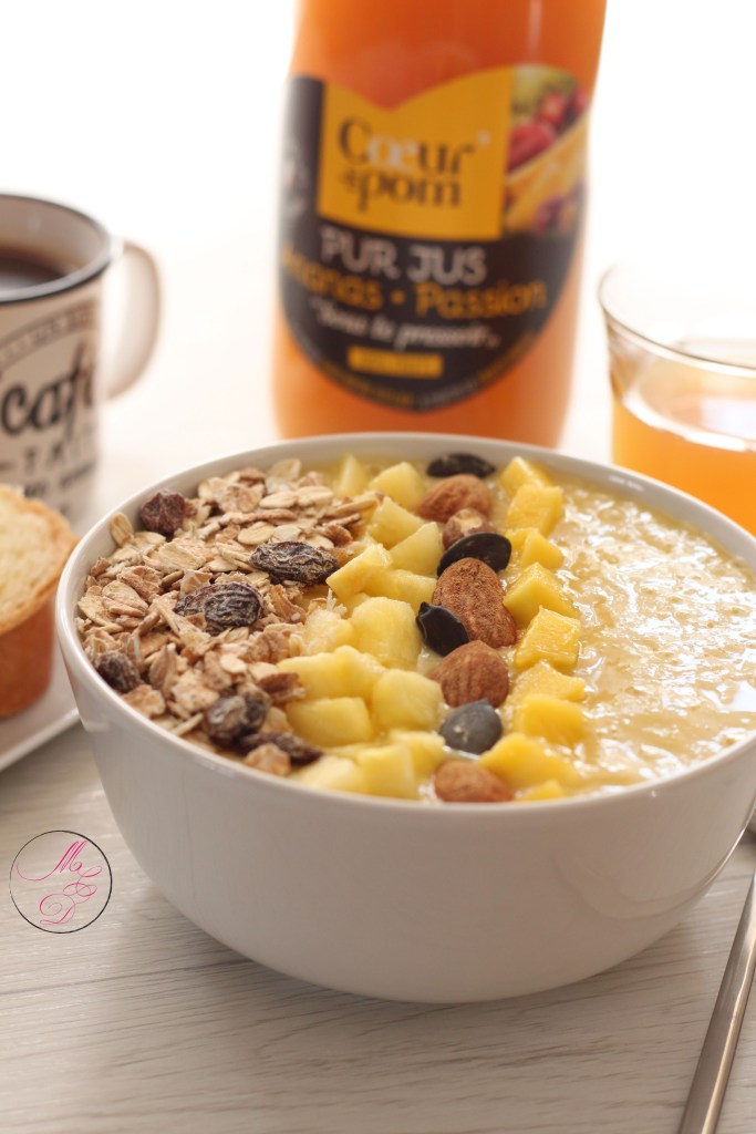 Servi avec une boisson chaude (thé, café …) ou un pur jus ananas-passion, on obtient un concentré de bonnes vitamines pour un petit-déjeuner sain et gourmand.