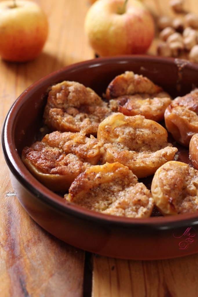 Les pommes au four, c’est une simplicité qui fait du bien. Un dessert fruité que j’adore préparer pendant l’automne et l’hiver. Cette saveur douce, sucrée et son allure de dessert de grand-mère, c’est tellement réconfortant ! Les puristes les préféreront simplement rôties au four avec un peu de beurre et de sucre mais si comme moi, vous aimez ajouter un peu de gourmandise, je vous propose de garnir les pommes d’une crème de noisettes. Ce n’est pas visuellement le dessert le plus sexy qui soit, mais avec ce type de recettes rustiques ce n’est pas ce qu’on recherche. Non, il faut l’imaginer comme le dessert qui viendra clore un déjeuner du dimanche à la campagne ou un goûter improvisé au coin du feu.