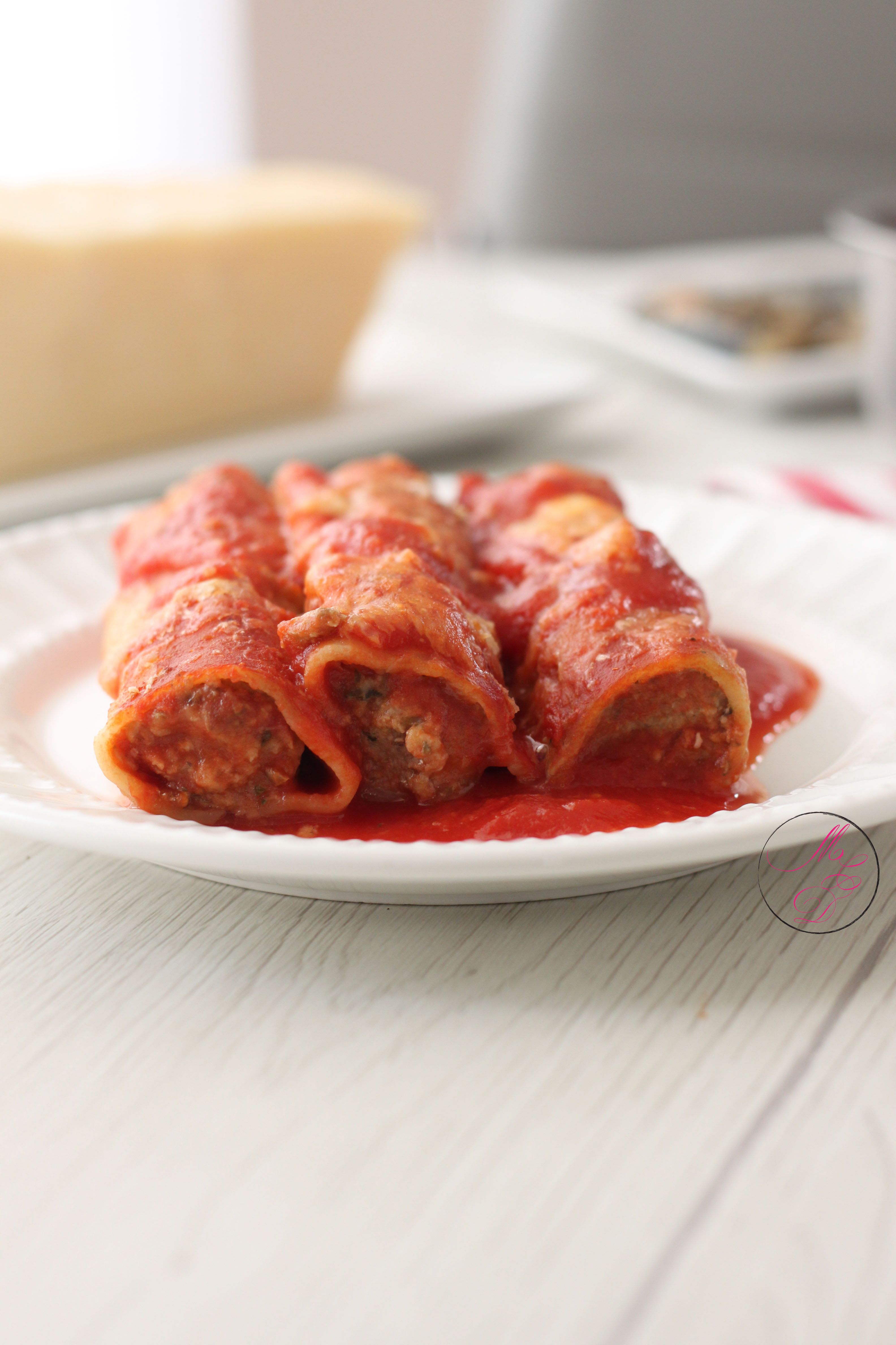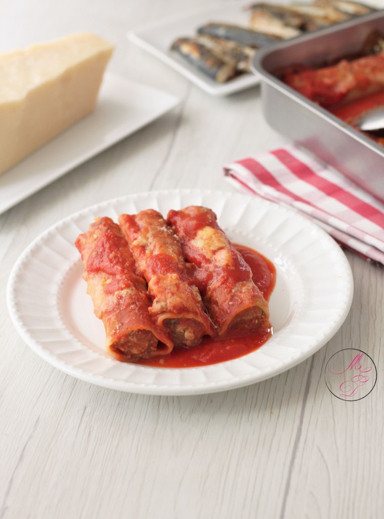 Aujourd’hui, je vous propose une recette de cannelloni et pour changer un peu du plat traditionnellement farci à la viande, j’ai choisi d’utiliser à la place des filets de sardines. Et afin d’avoir une farce bien parfumée, j’ai opté une nouvelle fois pour une garniture aromatique bien fraîche : des feuilles de menthe. L’association sardine/menthe est un héritage culinaire de ma grand-mère, ces saveurs me replongent immédiatement en enfance. C’est un plat savoureux et riche en goût, facile à cuisiner, avec des filets de sardines fraîches, ou à défaut en conserves, mais c’est quand même mieux si vous arrivez à obtenir de beaux filets bien frais. C’est le tout début de la saison des sardines, vous devriez pouvoir en trouver très vite sur les étals de votre poissonnier. Je vous souhaite de vous régaler autant que nous avec ce plat.