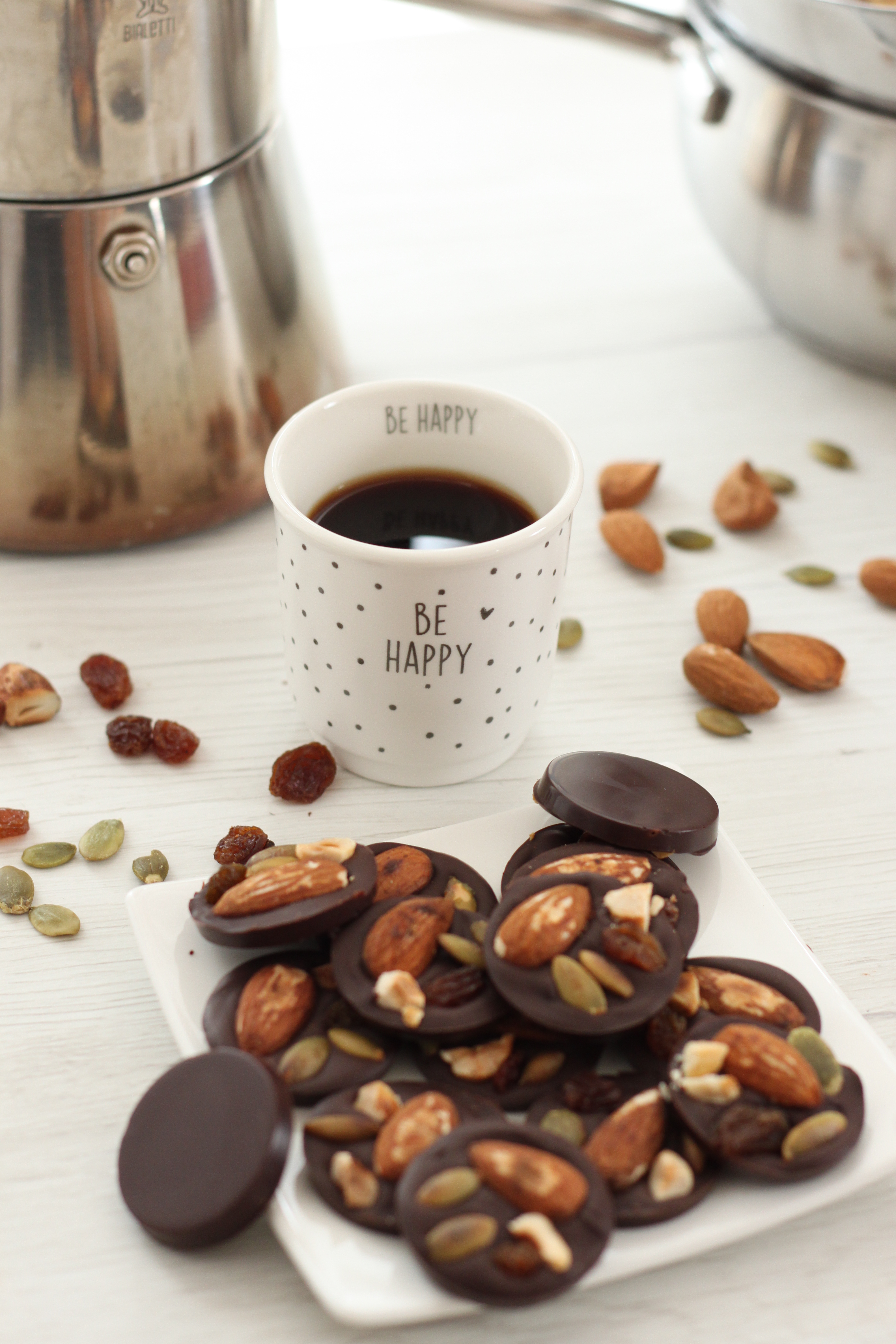 Me revoilà avec une jolie gourmandise à partager, de délicieux palets au chocolat, plus connus sous le nom de Mendiants. Pourquoi ce nom ? après avoir fait quelques recherches, il semblerait que les Mendiants tirent leur nom des ordres religieux (les « Ordres mendiants ») datant du XIIe siècle. Ils ont été nommés ainsi car c’est exclusivement à la charité et à la générosité des peuples qu’ils devaient leur survie. En mendiant et en recevant le soutien financier de leurs donateurs, ils pouvaient œuvrer pleinement à la dévotion religieuse et respecter ainsi leur vœu de pauvreté. Voilà c’était la minute culture. Maintenant, parlons un peu de ces merveilles. Il s’agit de petits palets de chocolat qui sont recouverts de toutes sortes de fruits secs, fruits confits, de graines etc. Pour le choix du chocolat, on peut opter pour n’importe quel type de chocolat (noir, lait, blanc) en privilégiant si possible un bon cru (chocolat de couverture, par exemple) afin d’obtenir le meilleur résultat possible. Après, toutes les audaces et fantaisies sont possibles et vous pouvez vous amuser en variant la garniture.