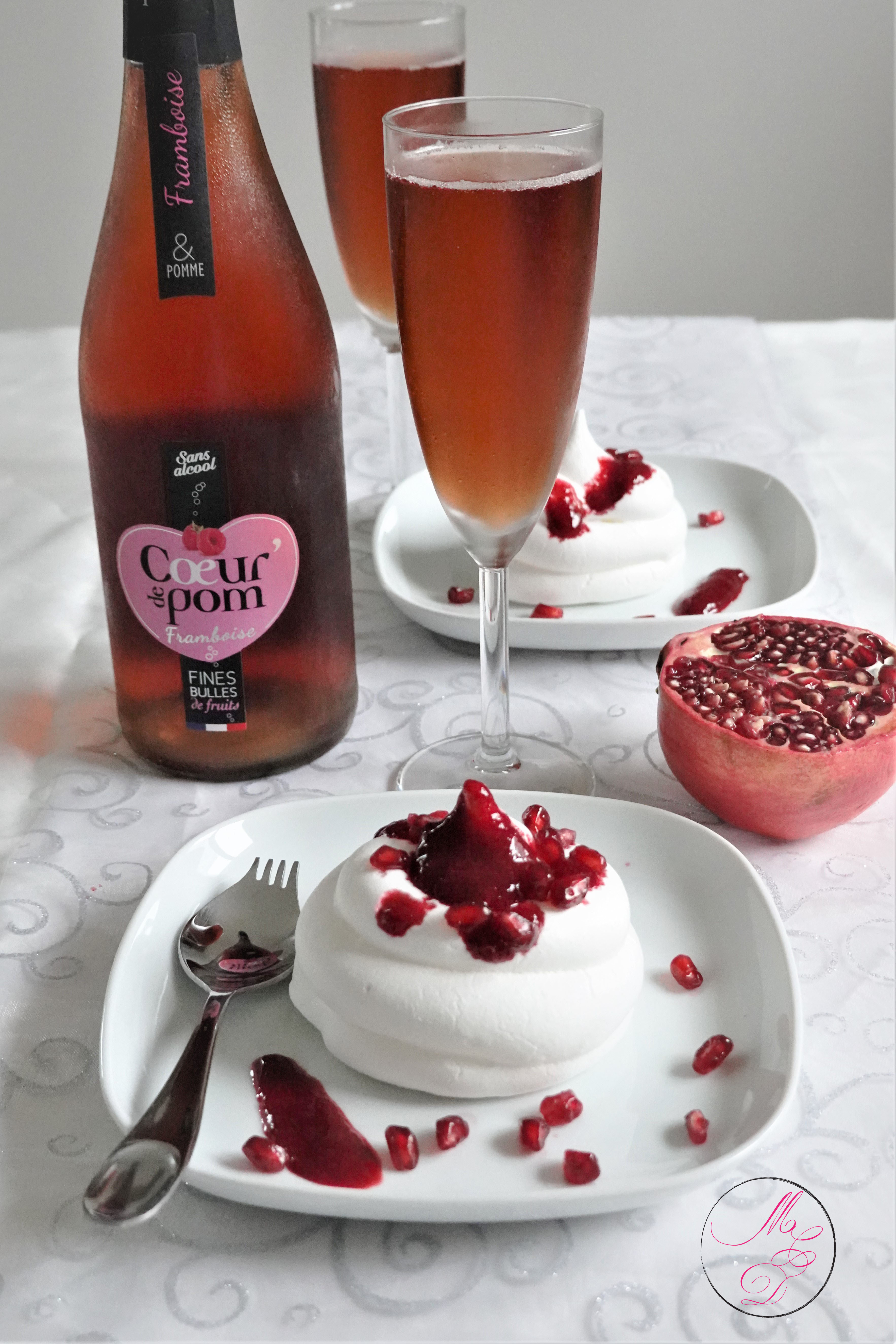 - Servir les Pavlovas avec le coulis de framboise et quelques graines de grenade.