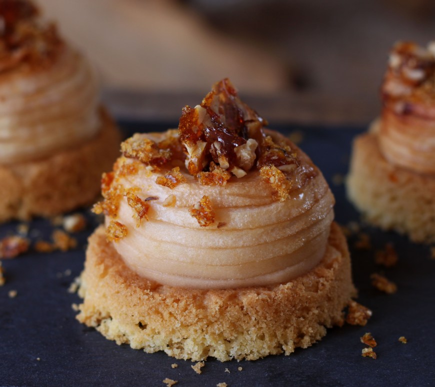 Tarte d’automne [pommes, caramel beurre salé & éclats de noix caramélisées]