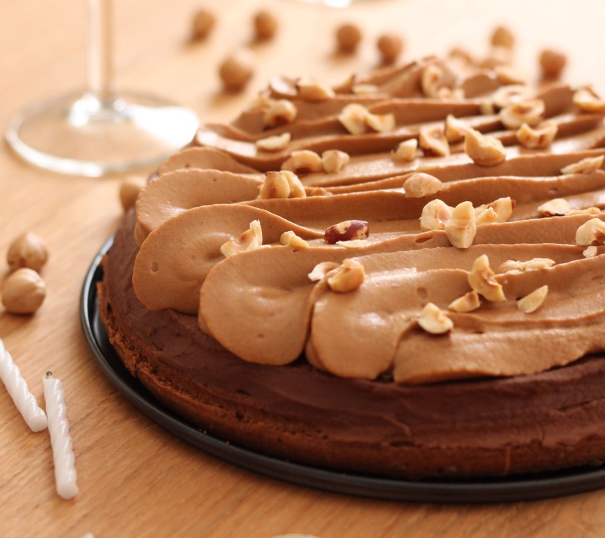 Gâteau d’anniversaire au chocolat, mousse au chocolat et crème pralinée