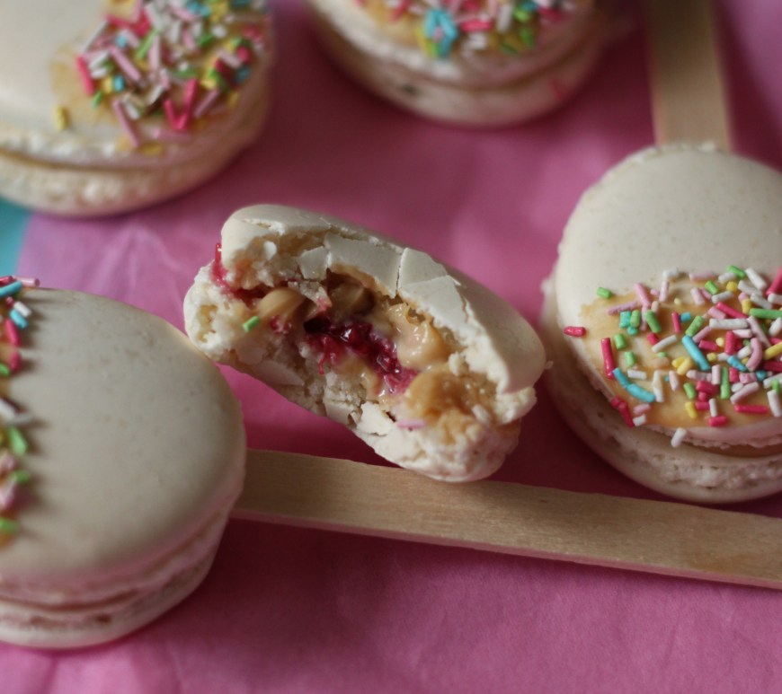 Macarons au chocolat Dulcey et framboise