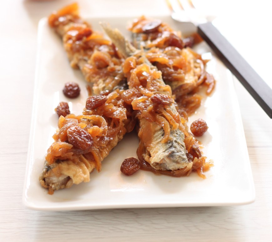 Sarde in soar (Sardines aigre-douces aux oignons et raisins)