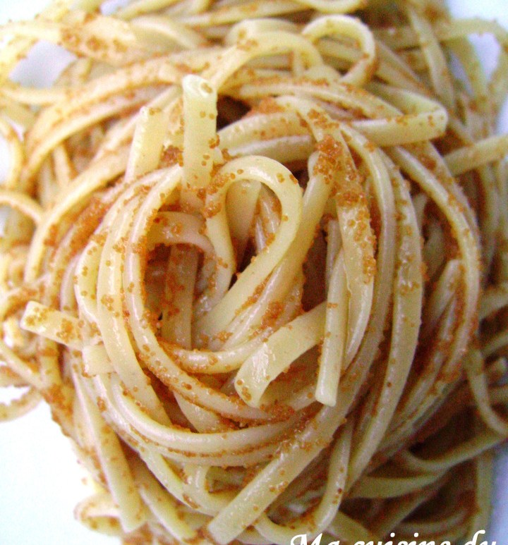 - Ajouter une petite louche d’eau de cuisson et laisser cuire à feu très doux pendant environ 1 minute en remuant continuellement et très rapidement afin de libérer le gluten contenu dans les pâtes (c’est ce qui va permettre de lier la sauce). Si les pâtes « boivent » trop, ajouter encore un peu d’eau de cuisson, et cela jusqu’à ce qu’elles soient cuites al dente (c’est à dire légèrement craquante sous la dent).