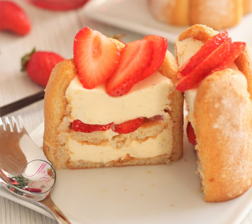 Tarte aux fraises sur biscuit madeleine et ganache montée à la vanille