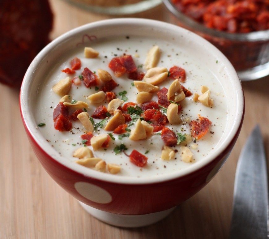 Le chou-fleur est un légume particulièrement bien adapté au velouté. Cuisiné ainsi, il perd son goût un peu fort qu’on pourrait lui reprocher. Sa texture devient lisse et fondante, ce qui offre une grande onctuosité en bouche. Je l’aime énormément cuisiné ainsi. Vous devez maintenant commencer à savoir que j’aime les soupes et veloutés quand ils sont gourmands. Rien de plus triste qu’un bol de … Continuer de lire Velouté de chou-fleur au chorizo et cacahuètes